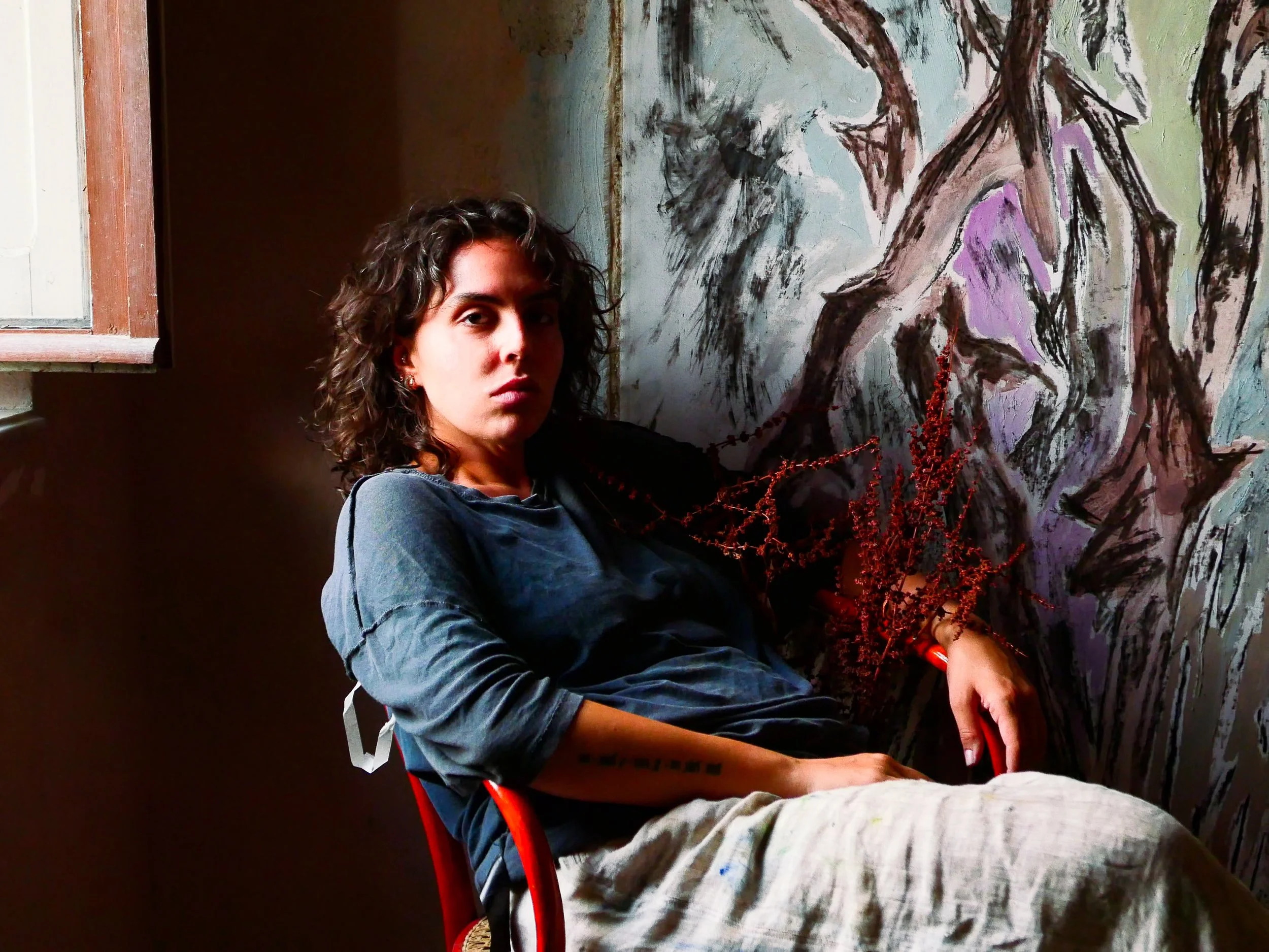 Her time at the residency allowed her to deepen this ongoing exploration, connecting her personal experiences and artistic language with the history and atmosphere of the valley. As she learned more about the region, she became particularly interested in the stories of arsons that have marked parts of the Val di Susa mountainsides. Alongside her studio work, Raya spent time exploring the valley and visiting the small chapels scattered across the landscape, allowing these encounters with place, history, and memory to quietly inform the continuation of her series.