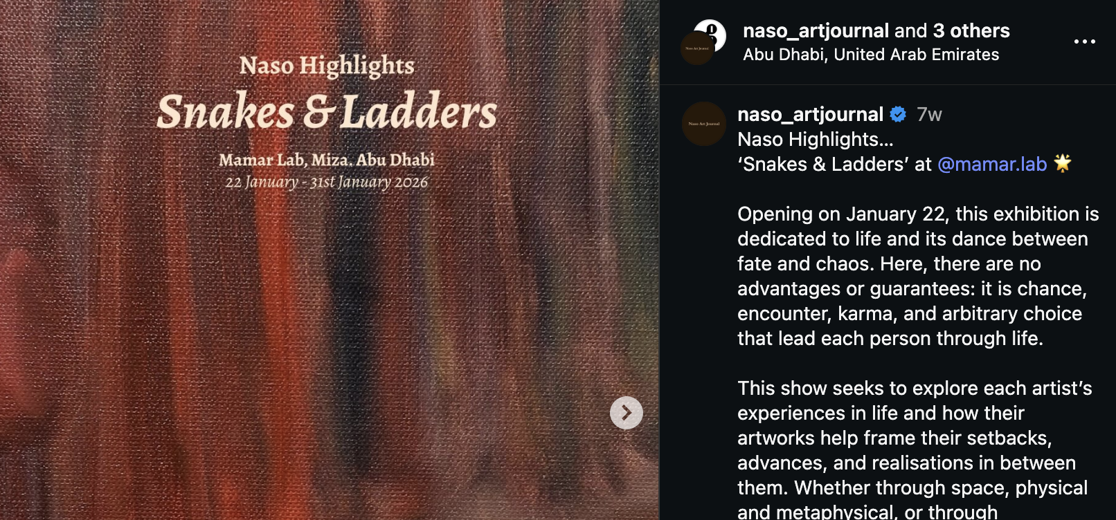 In the past year, he produced the group exhibition It Awakens (at Night) the Thought at Sima Collective in Dubai and curated the exhibition Mirage at Erth Hotel in Abu Dhabi.